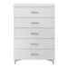 The Casilda bedroom collection will help you create the perfect retreat. In a white finish to easily style and works with various color schemes. Tying each piece together are the metal legs. The bed boasts a PU padded headboard with button tufting in a gray color. The headboard also includes LED lighting to illuminate your room at night. Complete your bedroom with matching case goods.