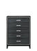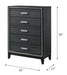 Classic design with touches of modern aspects makes this Haiden Chest ideal for any bedroom. The piece offers a rectangular table top and five storage drawers for displaying or organizing. It also features a glamorous shimmering accent trim that adds richness to design. The drawer handles carryover the same shimmering silver to tie them all together to create a cohesive look. The black finish makes it easy to fit into already existing decor.