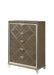 - Elegant Design: This sophisticated 5-drawer chest combines elegance with functionality, featuring embossed fronts that add subtle texture and depth to the design.