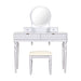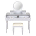 Luxury Vanity Desk With Round Mirror Height Adjustable Dressing Table Set Engineered Wood - Silver