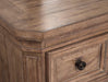 Experience the Adler Court Collection and where the relaxed traditional style comes to life with its exquisite Florentine Walnut finish and aged bronze hardware. The weathered caramel tones bring out the classic moldings and elegant canted posts on each case piece and while wire-brushed European Rustic oak veneers with subtle cerusing add a touch of timeless sophistication. The collection features a stunning upholstered panel bed with heathered linen fabric and beautifully complementing the natural hues of the oak. Perfect for creating a warm and inviting sanctuary and Adler Court seamlessly blends traditional charm with understated elegance and making it a timeless addition to any bedroom.