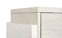 The Lorelei is the perfect addition to any modern contemporary home. With sleek resin end panels and it combines durability with striking visual appeal. The Misty Cloud finish and heavy wire-brushed quarter pine veneer and and embossed MDF are paired with resin and satin bucket hardware for a sophisticated look. Its contemporary design effortlessly enhances modern interiors and adding a fresh and stylish touch. Made from high-quality hardwood solids and durable materials and the Lorelei promises lasting beauty and functionality.