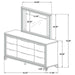 Add a touch of elegance to your bedroom with this spacious 9-drawer dresser, featuring a modern Italian design. The finish, combined with picture framed recessed panels and embossed herringbone graphic patterns, creates a sophisticated look. Accented with mirror framing, acrylic legs, and polished chrome metal hardware, this dresser offers ample storage space. The top center drawer includes a removable jewelry tray, and all top drawers are felt-lined for added luxury. Crafted from Asian hardwood, MDF, and mirror, this dresser combines style and practicality.