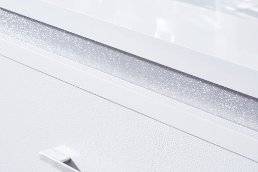 This dresser is a showstopper, bringing a touch of modern glamour to your sanctuary. A sleek white finish and inset glitter accents create a sophis...
