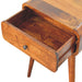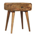 - Nightstand Solid Wood Avora with 1 drawer Artisan Furniture - Combining mid-century elegance with practical design, this bedside table is handcrafted from 100% Solid Mango Wood in a warm finish. Featuring a single drawer with a subtle knob for discreet storage, it rests on tapered Nordic-style legs that add a touch of retro charm. Perfectly sized for smaller spaces, this piece offers functionality and style, making it an ideal addition to bedrooms or living areas. Its handmade, sustainable craftsmanship and natural wood grain ensure that no two pieces are exactly alike, giving your home a unique and timeless accent.