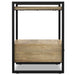 - Modern, industrial design includes black metal frame and black metal drawer handles