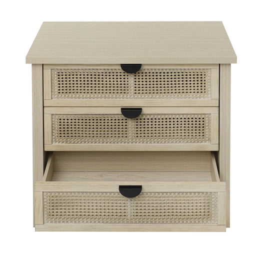 Mid-Century Charm: Elevate your home decor with our chest featuring woven rattan, angled legs, and golden handles, infusing a touch of mid-century...