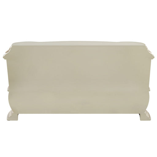 Elegant yet lightheartedly playful, this Dresden vanity desk is donned in an amiable vintage bone white finish with hand-applied burnish over the m...