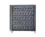 5 Drw • Drawer: Velvet Padded Fronts, GLIDE Side Metal (2/3 Ext.), DOVETAIL English Front & Back, NOT FELT-LINED, Safety Stop, Manual Close, Hardware: Single Pull Crystal-Like Knob (Plastic, Removable) •• CONSTRUCTION: Fully Padded Case • Wooden Inner Frame: Wood, Chipboard, MDF, PB • Metal Leg: Chrome •••