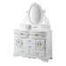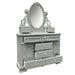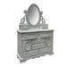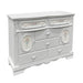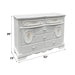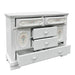 6 Drawer & 2 Doors (No Shelves Inside) Drawer: Wooden Center Drawer Glide, Dovetail Included, Felt-Lined Top Drawer, Hardware: Crystal like Knob (2 Top Drawers), Single Rossete Handle (4 Bottom Drawer) Construction Wooden Case-Frame: Bow Top Shape Wood Backet Legs Rossette Inlays Anti-Tipping KIT Included ASTM F2057 - 17 & ASTM F3096 - 14 Compliant (YES)