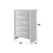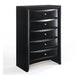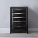The Ireland chest in black finish with spacious drawers will meet all of your bedroom storage needs, with space for clothing and linen. All drawers have English dovetail with center metal glides. Drawer fronts are beveled. Complemented by slightly flared square legs, the Ireland collection features contemporary feel and a modern finish with shaped drawer fronts.