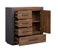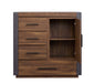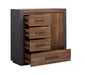 The Jensen Collection embodies the raw and edgy appeal of modern industrial style and featuring a Tavern Brown finish paired with Verona Bronze hardware for a rugged and utilitarian look. The casegoods showcase the perfect balance of wood and aged metal laminate and creating a striking mixed-media effect with bold and masculine lines. Set-back rails on the case fronts enhance the industrial aesthetic and adding depth and visual interest. Perfect for those seeking a bold and industrial-inspired retreat and the Jensen Collection will bring a dynamic and modern edge to your bedroom.