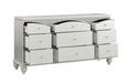 - Elegant Design: The Maverick Platinum Finish Dresser combines elegance and functionality, featuring nine spacious drawers ideal for ample storage. Its sophisticated arched top drawer adds a refined touch to its overall design.