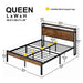 Queen Size Metal Platform Bed Frame With Wooden Headboard And Footboard With USB Liner, No Box Spring Needed - Brown