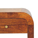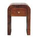 - Nightstand Solid Wood Mini Darcy with Curved Edges Artisan Furniture - Introducing the Mini Darcy Nightstand, a perfect blend of modern elegance and practicality. Handcrafted from 100% solid mango wood in a warm finish, this nightstand is designed with softly curved edges that exude a sleek, contemporary charm. Featuring a single drawer with a brass knob, it provides convenient storage while maintaining a clean and minimalist aesthetic. Its compact size and refined silhouette make it versatile for bedrooms, living spaces, or as a decorative accent. The Mini Darcy Nightstand combines timeless design with functionality, adding warmth and sophistication to any interior.