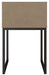 - Metal legs with a dark brown finish
