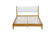 Queen Size Rubber Wooden, Solid Wooden Bed With Teddy Velvet Cushion Upholstered Headboard, Enhanced By Support Feet - Natural