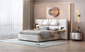 Queen Size Upholstered Platform Bed, 2 Outlets And USB Charging Ports On Both Sides, 2 Bedside Pillows, Storage Shelves - Beige