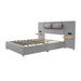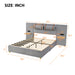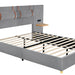 Queen Upholstered Platform Bed, 2 Outlets And USB Charging Ports On Both Sides, 2 Bedside Pillows, Storage Shelves - Gray