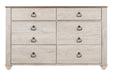 Willowton - Six Drawer Dresser - Brown / Beige / White