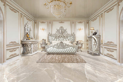 Bringing a modern approach to the classic ornate Rococo style, the Adara bed blends in contemporary touches with traditional design details. The PU...