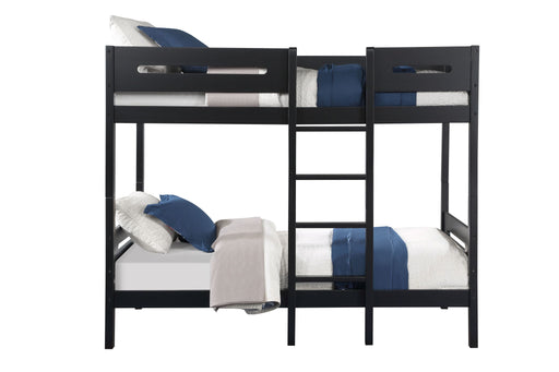 Space-Saving Design: The Ekko Black Finish Twin/Twin Bunk Bed features a stacked twin-over-twin configuration, maximizing vertical space in y...