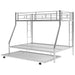 Twin Over Full Bunk Bed With Steel Frame And Twin Trundle, 2 Side Ladders - Silver