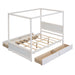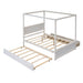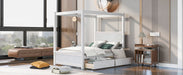 Full Size Canopy Platform Bed With Trundle Bed And 2 Drawers, Support Slats, No Box Spring Needed - Brushed White