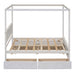 Full Size Canopy Platform Bed 2 Drawers With Support Slats, No Box Spring Needed - Brushed White