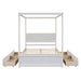 Full Size Canopy Platform Bed With 4 Drawers And Support Slats, No Box Spring Needed - Brushed White