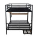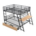 Full Size Bunk Bed With Built In Desk, Light, And 2 Drawers - Black