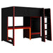 Twin Size Gaming Loft Bed With Built In Desk, Wardrobe, LED Lighting And Drawer - Black