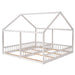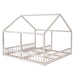 Twin Size House Platform Beds, 2 In 1 Shared Design With Guardrails - White