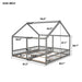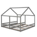 Twin Size House Platform Beds, 2 In 1 Shared Design With Guardrails - Gray