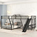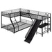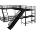 L-Shaped Twin Over Full Bunk Bed With Twin Loft, Built In Desk And Slide - Black