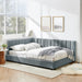 Mid-Century Upholstered Tufted Bed Frame With Backrest And Armrests