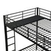 Modern Metal Triple Bunk Bed With Vertical Ladder, Safety Rail, And Storage Shelf - Black