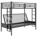 - Sleek Metal Bunk Bed: Modern space-saving design with a twin over full configuration and futon sofa functionality