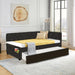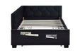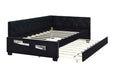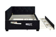Upholstered Twin Size Daybed Bed Frame (Corner Bed) With Trundle, Velvet Fabric, Studding Design, No Box Spring Required - Black