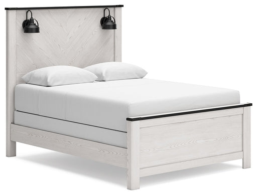 Cool, clean and casually modern. This panel bed’s rustic finish sets the tone for your calming sanctuary. Matte black sconce lights and an abstract...