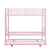 Modern Metal Bunk Bed With Trundle, Durable Steel, Twin Over Twin - Pink