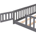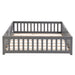 Solid Wood Full Size Floor Bed With Door And Fence For Children, Pine Wood Construction - Gray