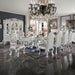 The Dresden traditional side chairs feature highly decorative carving inlay veneers that add a regal touch to them. They boast a classic claw feet design and brushed silver contrast details. The same beautiful shell and leaf details found on the legs are carried over to the crown for a cohesive finish. Carefully crafted in selected wood and veneers, perfectly suited for your formal dining bedroom. Sold as a set of 2.