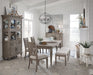 Inspired by inns and wineries in the Napa Valley, the Lancaster dining collection exudes the ambience of a laid-back resort. Crafted of high-low Pine and Hardwood Solids, the soft Dovetail Gray finish and Weathered Bronze hardware mix effortlessly with graceful turned legs and designer details to create a look that is distinctive yet inviting. Adding a casual classic and coastal flair, shutter wood doors are used on the server, and two shutter doors are also on the base of the counter table, with adjustable shelves behind. The distinctive piece selection includes a buffet, server and a dining cabinet with two wood-framed glass doors on the top and two on the bottom, offering 3-way touch lighting control with 2 LED lights. The table options include a 52-inch round and a 68-inch rectangular leg table. The tables can be extended to 70 inches and 86 inches, respectively, with use of a leaf. The rectangular counter table extends to 58W x 36H when the butterfly leaf is used. The versatile seating options include a side chair with upholstered seat and wood slat back, an upholstered seat and back chair, a bench with upholstered seat and wood trim, an elegant shaped chair with wood trim and upholstered seat and back, and counter-height dining chair with upholstered seat and slat back. Take a vacation without leaving home with the resort flavor created by the Lancaster dining collection.