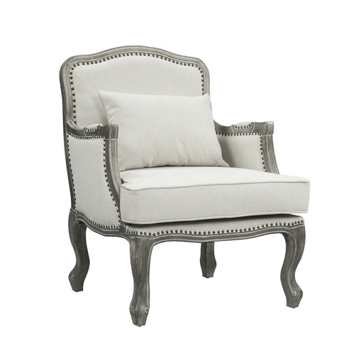 Elevate your home with this upholstered accent chair, designed for both style and comfort. Wrapped in soft linen-like beige fabric, it features plu...