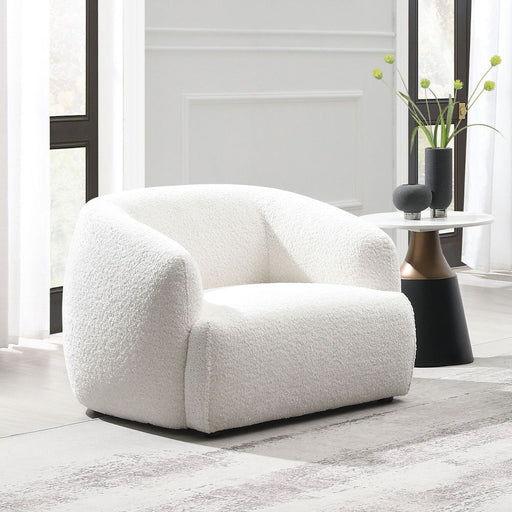 Make a bold style statement with the Mardi Accent Chair, where comfort meets modern artistry. Upholstered in rich maroon tweed fabric, this chair b...