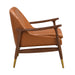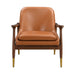 Accent Chair With Cushioned Seat, Brass Tipped Legs - Cognac Brown