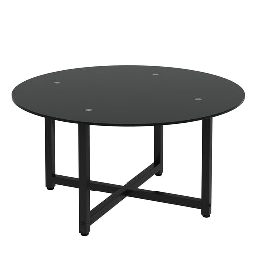Compact and Sturdy Design: Table size 35.44" x 35.44" x 17.72" with a capacity of 220lbs, made of 8mm round tempered glass. Modern and Elegant: ...