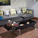 The Calnan coffee table has it all, good looks with its chrome modern legs exposed on the outside of a box top. Full of surprises, like lift top tray and slide top storage with additional storage under the lift up tray. This table will ensure your living area remains clutter free.