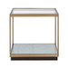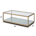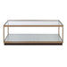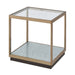 This Kaia table features an elegant glass top and a sleek metal base, providing a modern and sophisticated touch to any living room. The glass top is tempered for added durability while the lower shelf features a textured surface, and creates a sense of lightness and airiness, making it an ideal choice for smaller spaces. It features clean lines and a minimalist design, adding a touch of simplicity and sophistication to it.